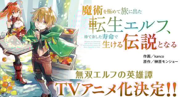 周三开设了一个特别网站,宣布将榊原文昌的作品改编成电视动画 Majutsu o Kiwamete Tabi ni Deta Tensei Elf, Moteamashita Jumyō de Ikeru Densetsu to Naru 《掌握魔法踏上旅程的转生精灵,成为超长寿命的活传奇》轻小说系列。